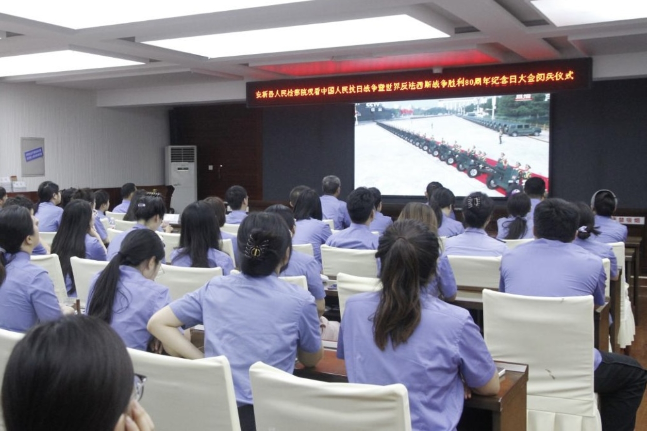 为弘扬爱国主义精神、厚植检察职业情怀,9月3日上午,安新县人民检察院组织全体干警集中观看纪念中国人民抗日战争暨世界反法西斯战争胜利80周年大会。通过庄严肃穆的仪式教育,引领干警砥砺初心、淬炼党性。