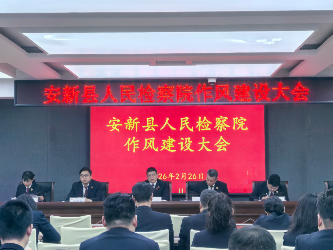 2月26日下午,安新县人民检察院召开2026年作风建设大会,深入学习省、新区相关会议精神,引导干警收心归位、提神鼓劲,同时部署新一年作风建设重点任务。全体干警参会,党组副书记、副检察长张根顺主持会议。