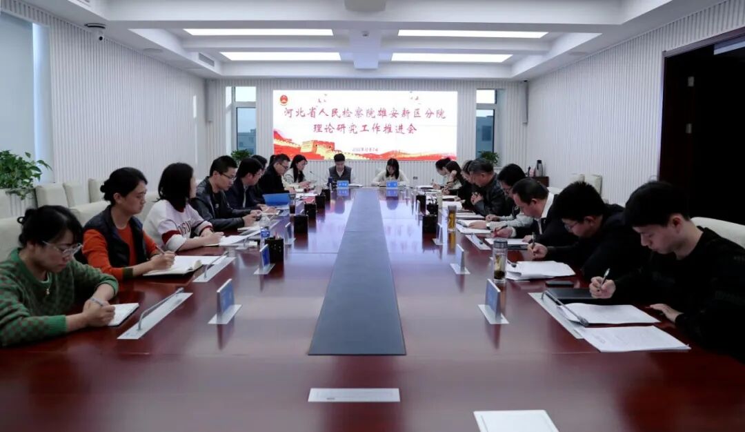12月7日下午,雄安检察分院召开检察理论研究推进会,传达学习河北省法学会检察理论研究会成立大会暨第十届河北检察理论研究年会精神,研究落实分院党组工作部署,高质量谋划和推进检察理论研究工作,为检察工作现代化和雄安新区高标准高质量发展提供理论支撑和智力支持。党组成员、副检察长赵玮出席并讲话。各业务团队负责人和三县检察院分管副检察长、部门负责人及最高检基层锻炼干警参加会议。