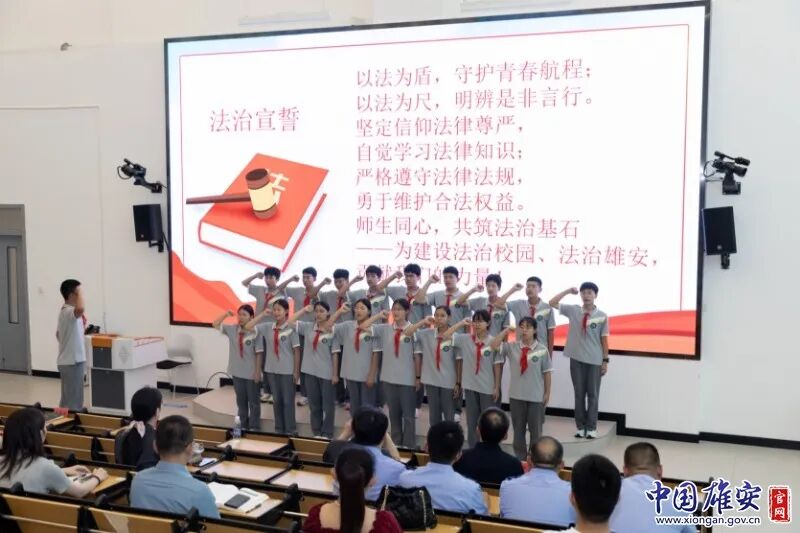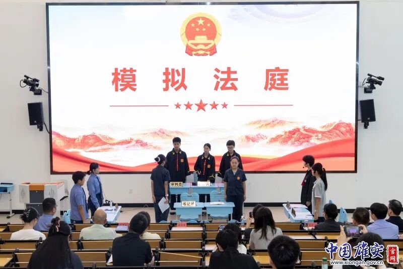 活动现场设置了模拟法庭环节,雄安新区中级人民法院组织学生亲身体验法庭审判的过程。师生代表还进行了庄严的法治宣誓仪式,在铿锵有力的誓言中感受法治精神。这种沉浸式、互动式的教育模式,有效增强了法治教育的吸引力和感染力。