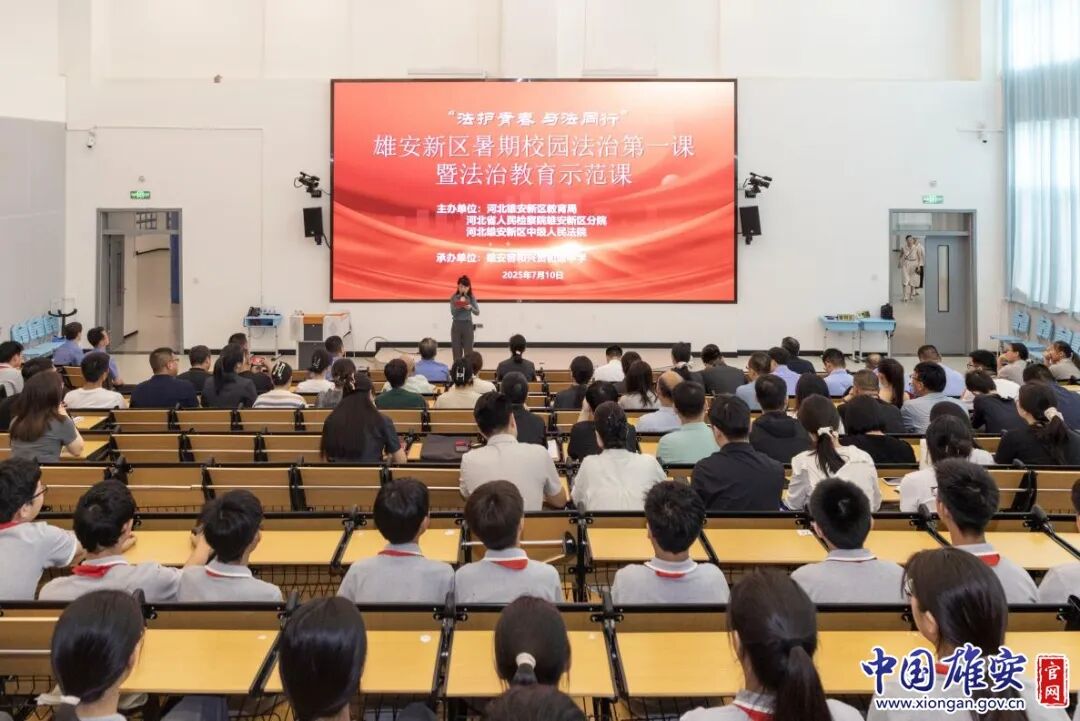 7月10日,雄安新区暑期校园法治第一课暨法治教育示范课在容东片区兴贤初级中学举办。本次活动由河北省人民检察院雄安新区分院、雄安新区中级人民法院、雄安新区教育局联合承办,旨在打造一堂具有示范意义的法治教育精品课,全面提升青少年法治素养,为新区法治教育工作树立标杆。