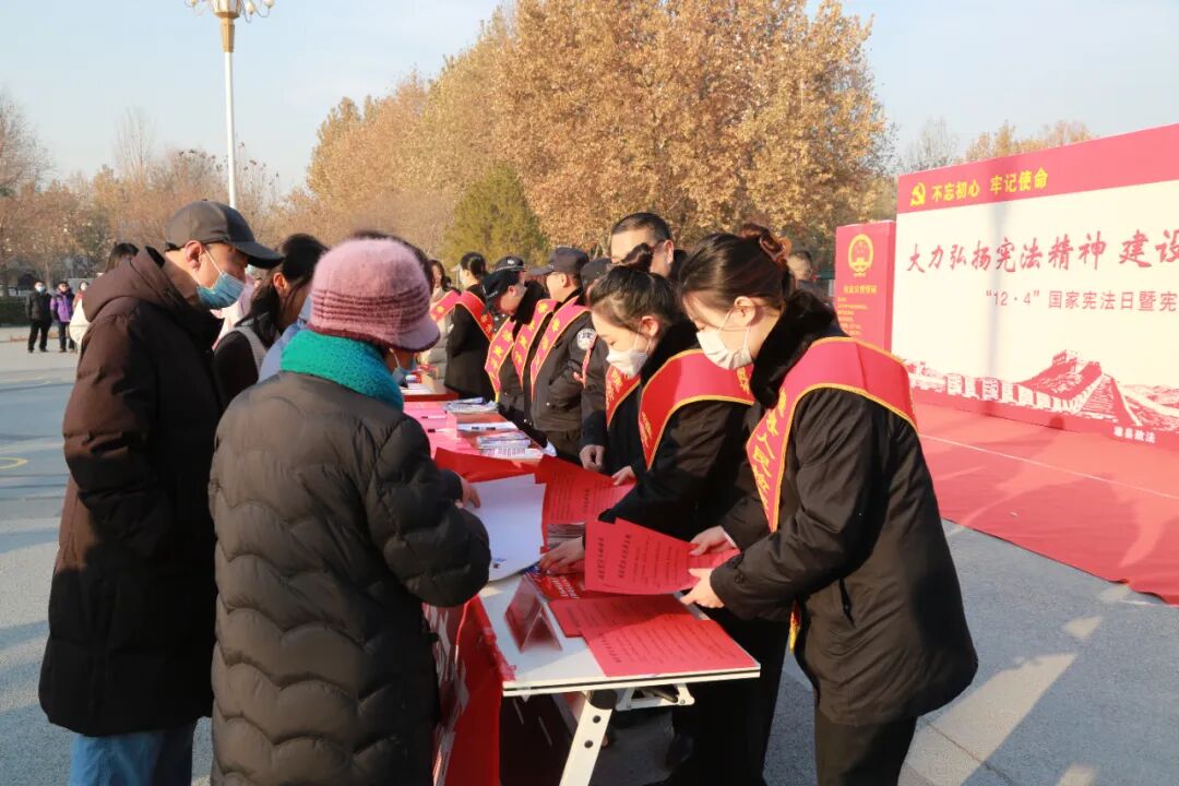12月4日一早,雄县检察院干警们来到县政府广场,通过宪法宣誓,进一步增强尊崇宪法、学习宪法、维护宪法、运用宪法的思想自觉和行动自觉。向过往的群众发放宣传手册,现场解答他们的法律咨询,以通俗易懂的语言讲述一个个真实的案例,引导群众敬畏法律,切实做到学法、知法、懂法、守法。
