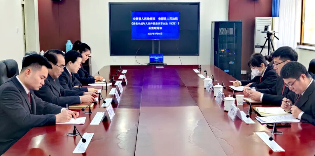 3月10日,安新县检察院、安新县法院会签《涉未成年人案件信息共享办法(试行)》(下称《办法》),召开座谈会。进一步加强检察机关、司法行政机关在未成年人司法保护工作中的配合协作,切实提升未成年人保护工作质效。 《办法》明确法院在受理离婚、监护、抚养等涉未成年人案件时,发现未成年人合法权益受到或者可能受到侵犯的情形,相关组织和个人未代为提起诉讼的,介绍检察院支持起诉职能,征询当事人意见,并及时将案件线索移交检察院。检察院要充分发挥督促、支持诉讼职能,每周到法院进行信息对接,明确未成年人保护方向,确定保护维度,支持其通过司法途径维护合法权益,并将案件进展、结果适时反馈法院。