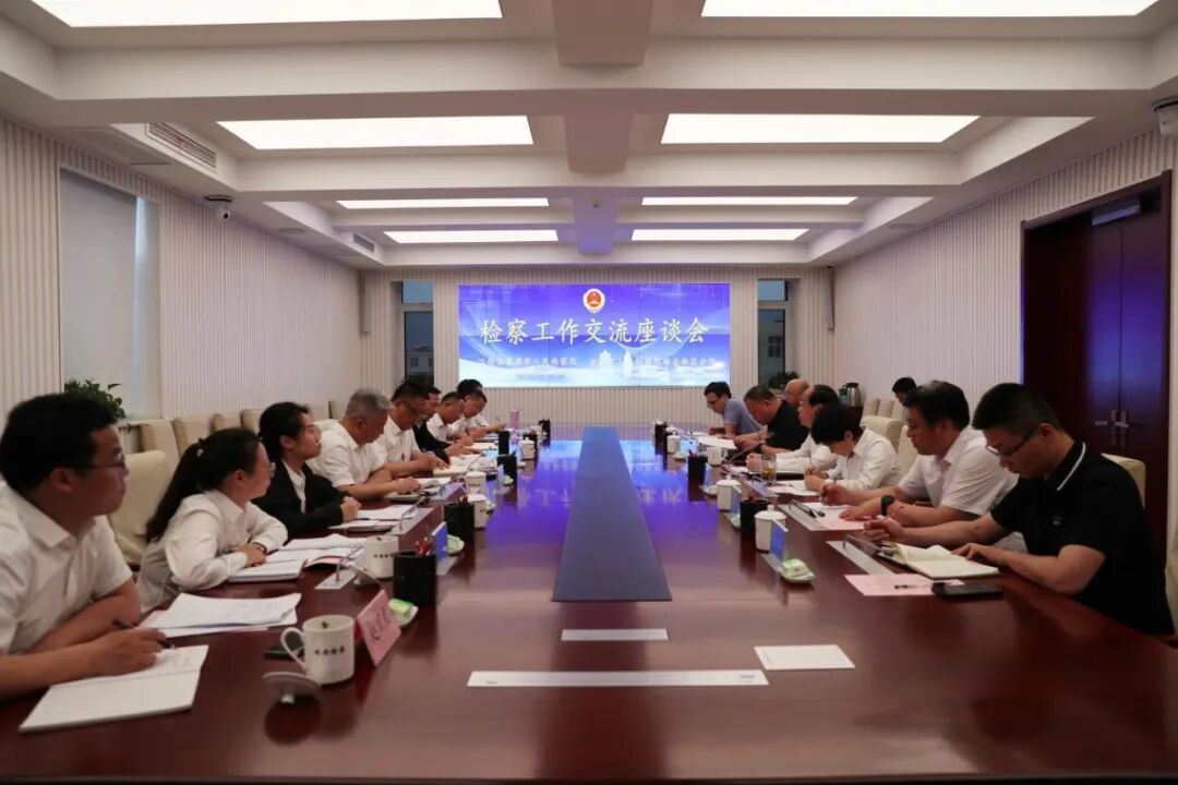 近日,雄安检察分院与江西省鹰潭市人民检察院召开检察工作交流座谈会,交流探讨检察一体化建设相关情况。雄安检察分院党组书记、检察长纪志明,党组副书记、副检察长杨静,检委会专职委员杨福增,鹰潭市人民检察院党组书记、检察长张江,检委会专职委员陈俊杰及相关负责同志参加会议。