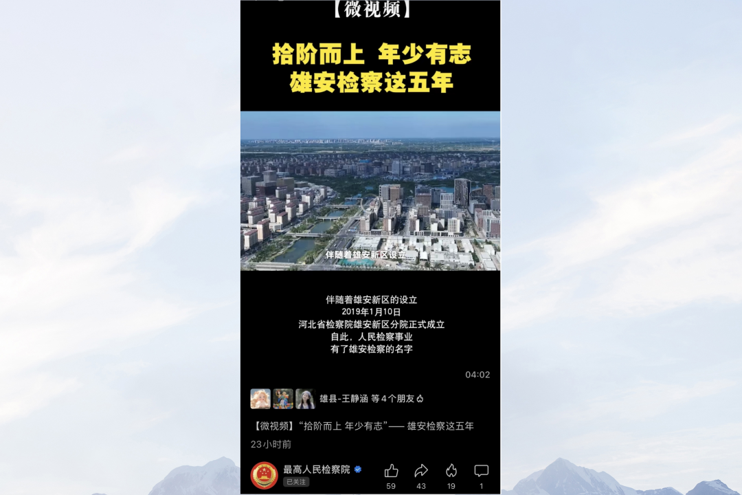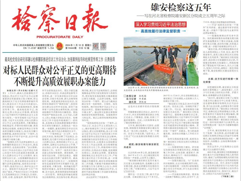2024年1月10日,是雄安检察分院成立五周年的日子。五年来,分院紧紧围绕服务保障雄安新区建设发展,从一张白纸上绘蓝图,新时代雄安检察工作也在高质量发展轨道上行稳致远,中央、省、新区等多家媒体以文字报道、视频等形式在显要位置刊发报道。