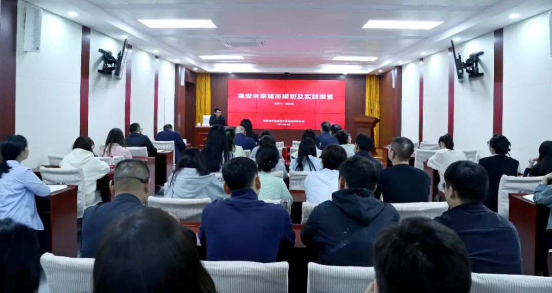 在雄安新区设立七周年之际,为深刻体悟以习近平同志为核心的党中央深入推进京津冀协同发展,高质量规划、高标准建设雄安新区这一重大决策部署的深远意义,进一步激发广大检察干警工作热情,凝聚干事创业正能量,4月18日,雄安检察分院邀请雄安新区规划院总工办负责人、设计总监赵金松同志以“雄安未来城市规划及实践探索”为题进行专题授课。分院党组成员、政治部主任张德新主持,两级院全体检察干警同步收听收看。