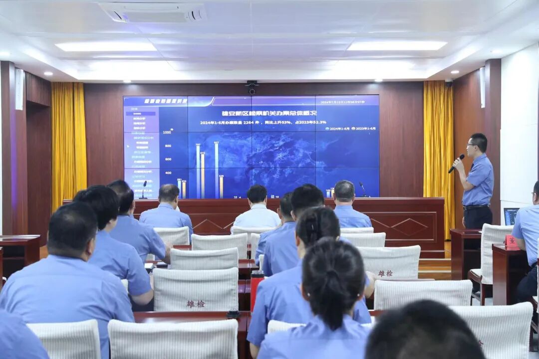 为持续推进雄安新区检察工作高质量发展,提升检察履职质效,7月12日,雄安检察分院召开2024年1至6月业务数据分析研判会商会议,两级院一体会商各项业务工作进展情况,研究部署下一步工作任务。分院党组书记、检察长纪志明主持会议并讲话。分院有关领导,三县院检察长、分管副检察长以及分院各部门负责人等参加会议。