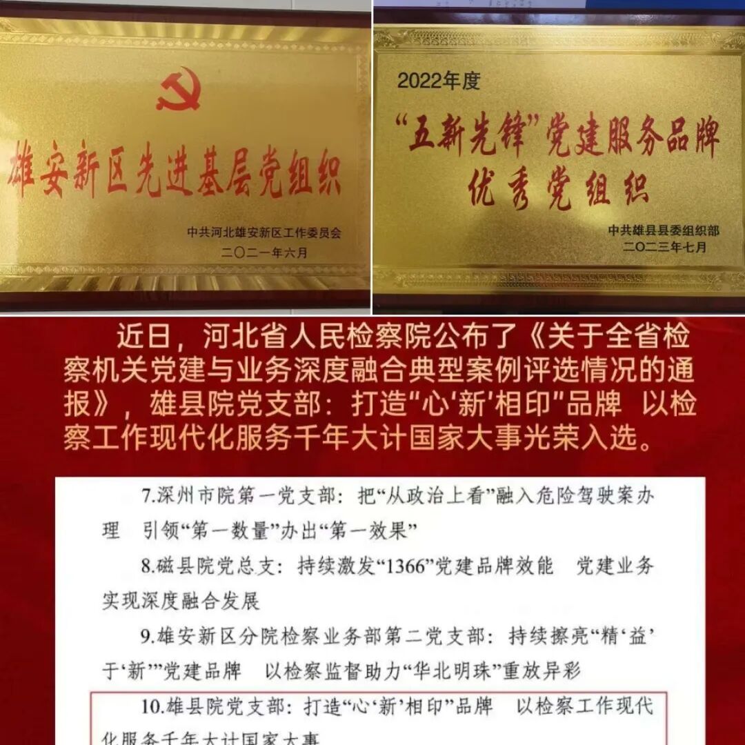 党建兴,则事业强。在法律监督过程中、在司法办案各环节,总有一面旗帜指引着方向、鼓舞着士气,那就是飘扬的党旗。六年来,雄县检察院在分院带领下充分发挥党建引领作用,把讲政治、抓党建、强业务融入检察履职全过程,努力做到“党建有力度、服务有温度、办案有质效”,坚持以高质量党建激发检察工作新活力,为“千年大计”展现检察新作为。