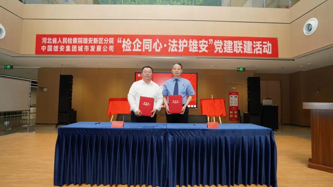 8月21日,雄安新区检察分院与中国雄安集团城市发展投资有限公司共建的“法护雄安·同心圆”法治护航中心及“商服楼宇法治教育基地”,在雄安商务服务中心举行揭牌仪式。雄安检察分院党组成员、副检察长张德新,雄安集团城市发展公司党委副书记、纪委书记王立刚等双方代表出席活动。