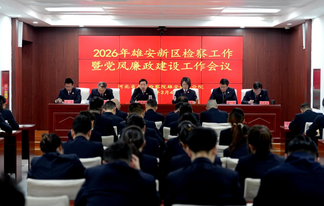 3月4日,2026年雄安新区检察工作暨党风廉政建设工作会议召开。会议认真学习贯彻习近平总书记对政法工作、检察工作的重要指示精神,深入贯彻落实全国、全省检察长会议和新区2026年工作会议、新区党工委政法工作会议,全省检察机关和新区党风廉政建设工作会议精神,聚焦加速实现雄安检察现代化,更好服务高标准高质量建设现代化城市,总结“十四五”时期工作,研究部署2026年任务。分院党组书记、检察长黄英杰出席会议并讲话。