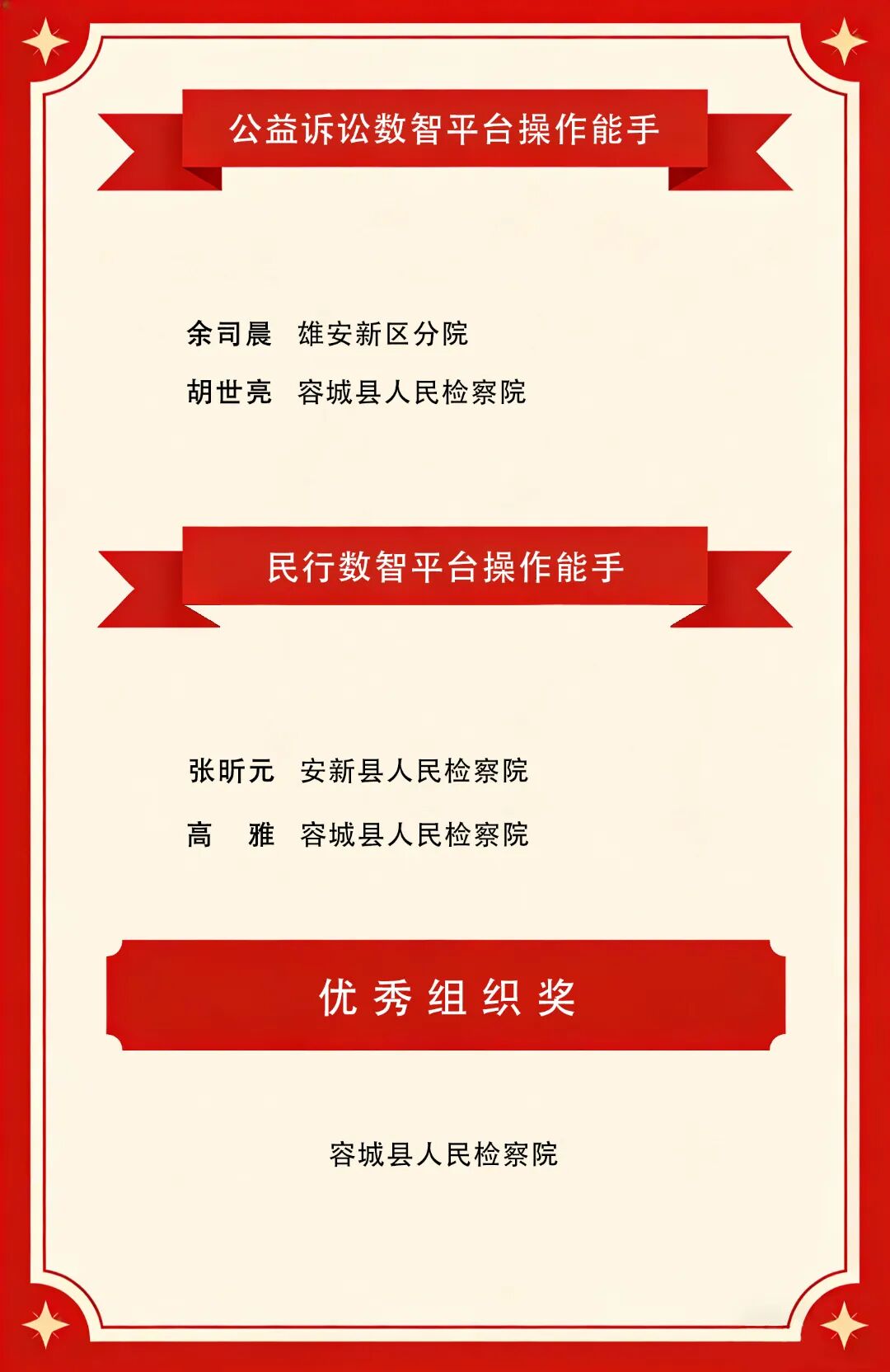公益诉讼和民行检察数智平台操作使用观摩评比活动获奖名单