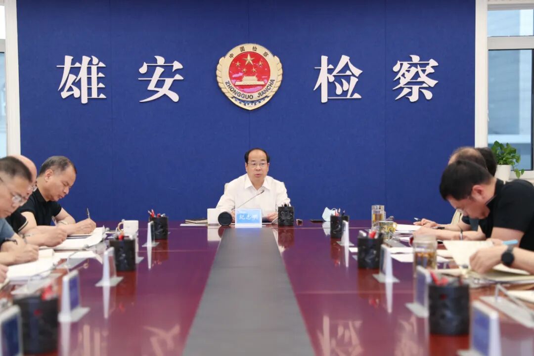 7月31日,雄安检察分院党组书记、检察长纪志明主持召开党组(扩大)会议,第一时间传达学习全省检察工作推进会议精神,研究贯彻落实意见。分院党组成员、专职检委、各团队负责人、三县院检察长参加会议。