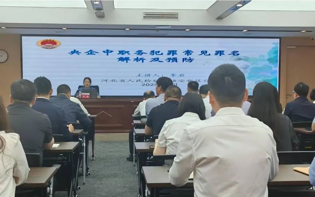雄安检察分院检察官以央企中的职务犯罪常见罪名解析及预防为题为大唐科创公司进行法治宣讲。深入剖析贪污罪、受贿罪、挪用公款罪等高频罪名的构成要件及法律后果,通过典型案事例,深入浅出进行了详细解读,警示大家“贪腐无小事,失足毁终身”,强化工作人员廉洁从业意识,助力企业拧紧“廉政发条”。
