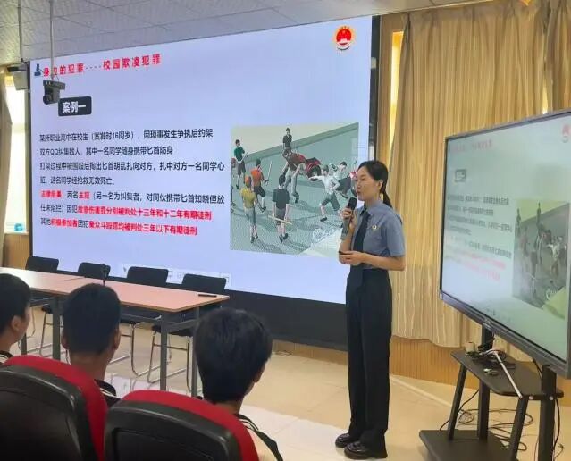 检教联动,以回迁片区及偏远乡村中小学生为受众,全面开展开学季送法入校活动。“禾风”未成年人保护法治宣讲团检察官结合案例,从“犯罪预防”和“自我保护”等角度以案释法,以通俗易懂的语言和现场互动问答、知识竞赛比拼的方式,从明理向善、知法懂法、守法用法等方面,教育和引导同学们自觉抵制不良行为、拒绝严重不良行为,做到心中有法、行中有度。
