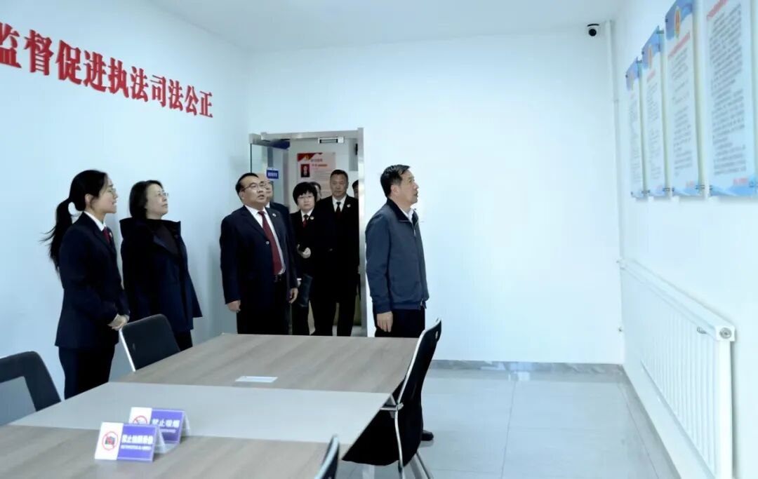 图为黄英杰(右)赴雄县检察院调研检察工作开展情况。