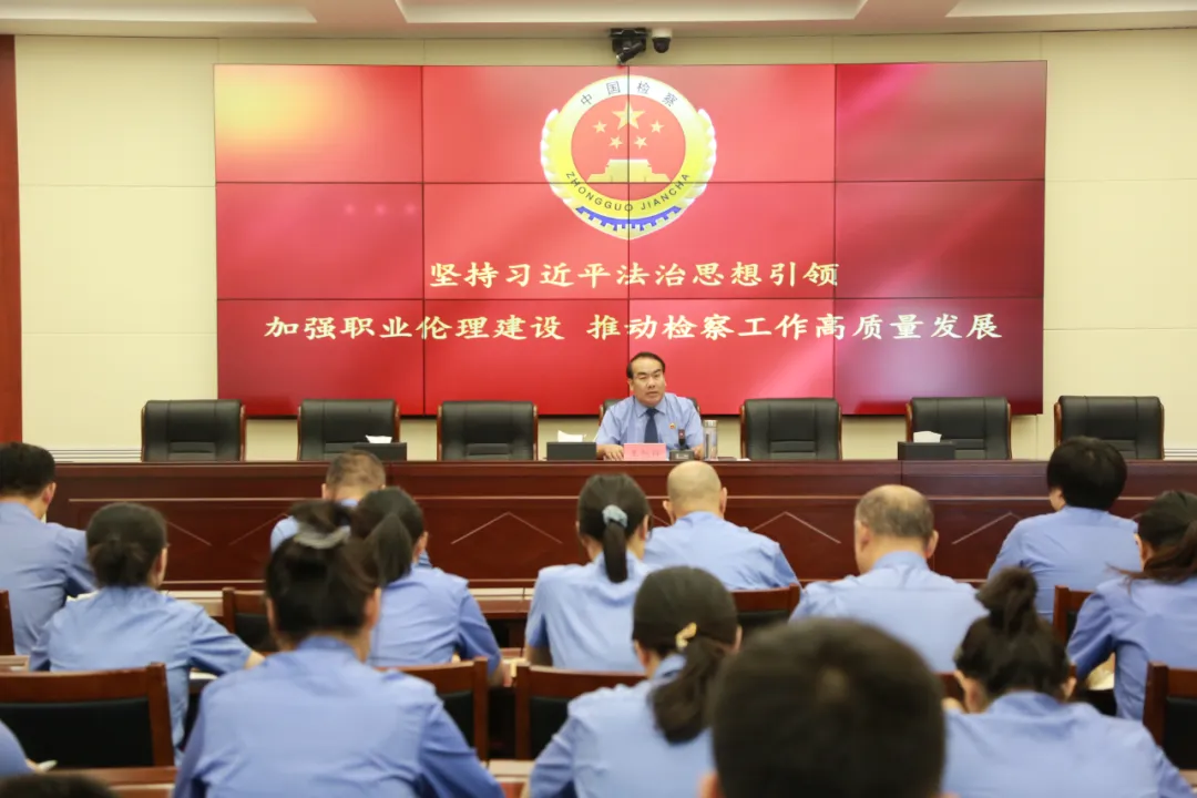 王旭辉检察长指出,党的十八大以来,以习近平同志为核心的党中央高度重视法律职业伦理在法治工作队伍建设中的重要地位,形成了科学化、系统化的法律职业伦理观,是引领新时代检察队伍建设的重要指导思想。检察职业伦理是检察权行使的重要保障,是建立司法公信力的基础,更是实现检察工作现代化的价值基础。加强检察职业伦理建设是检察队伍适应新时代发展新要求的必然选择,更是检察工作服务经济社会高质量发展的应有之义。